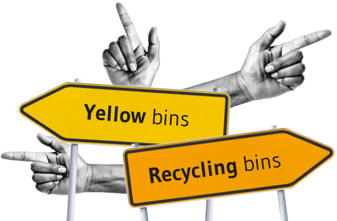 These bins are a construct that don’t really reflect the way people live. Consumers naturally tend to separate their waste according to what type of material it’s made of rather than whether it’s packaging material or not. Which means that a whole number of products end up in the yellow bin that – while they may be of the right material – are not actually old packaging. The circular economy refers to this as intelligent outthrow. Recycling bins were introduced in response to this and aim to enable a better and more comprehensive collection of recyclable materials so that plastics and metals can be recycled.